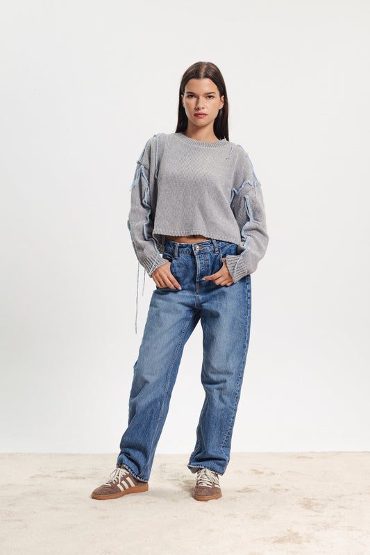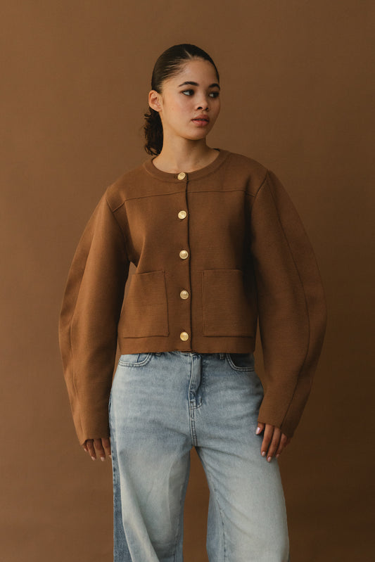 Basic V Neck Sweater TOP (Pants Not Included)- Brown