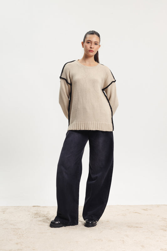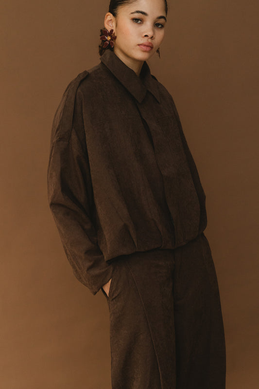 Basic V Neck Sweater TOP (Pants Not Included) - Brown