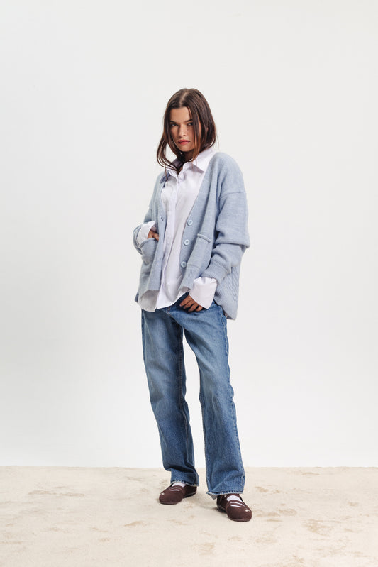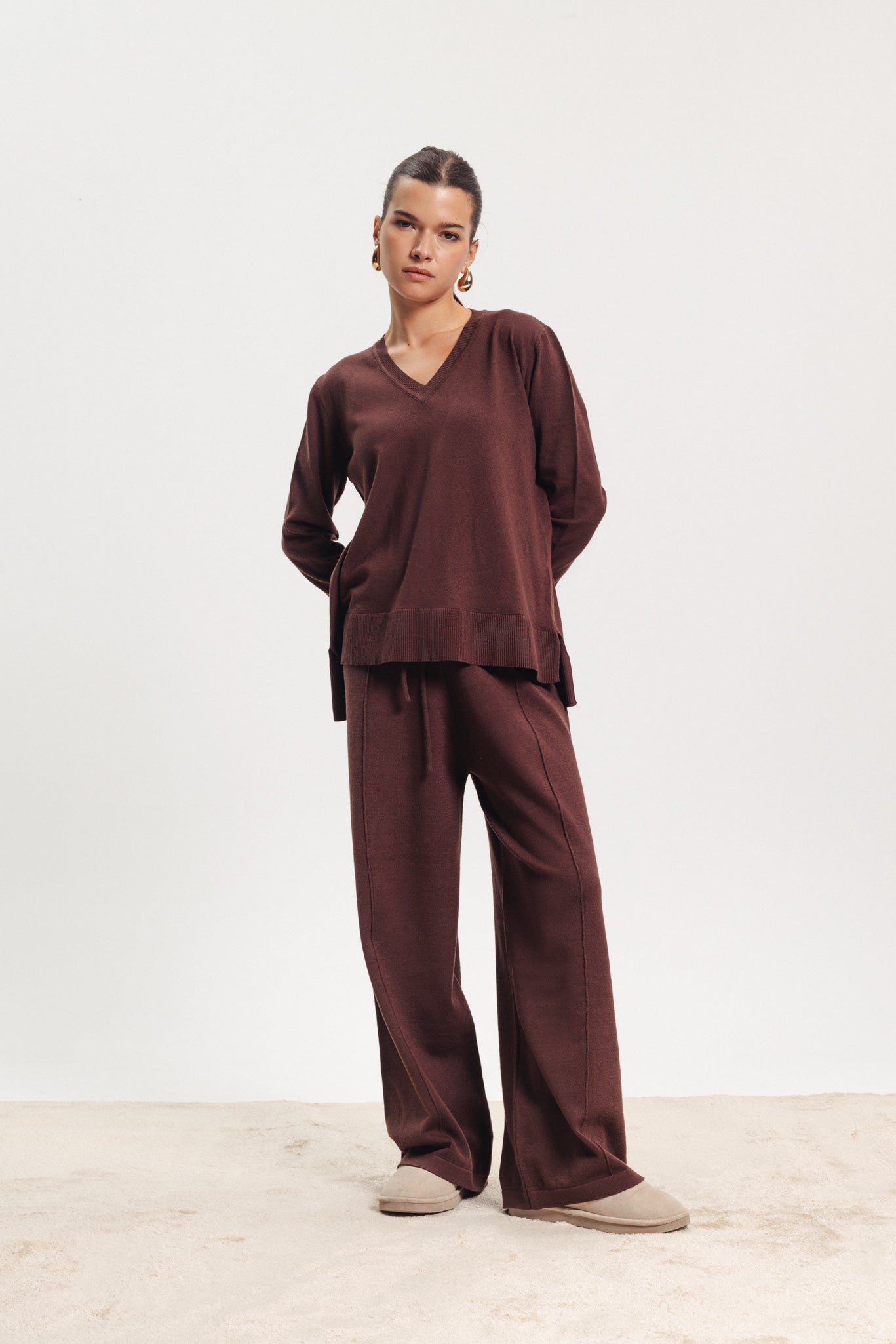 Basic V Neck Sweater TOP (Pants Not Included)- Brown