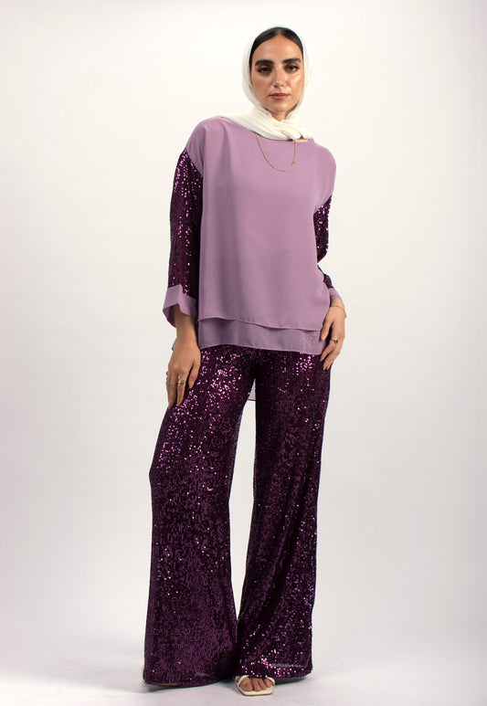 SEQUENCED SLEEVES CHIFFON LAYERD TOP