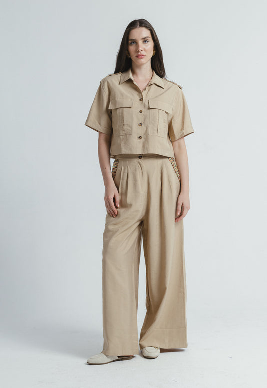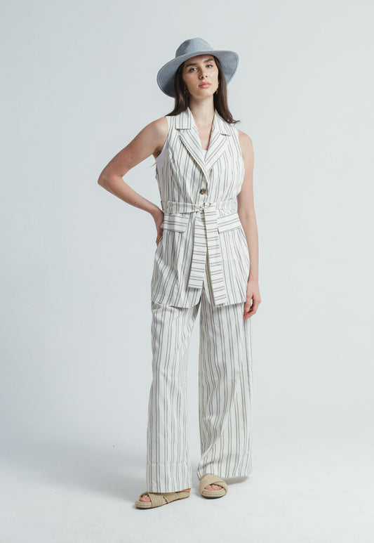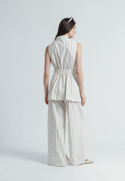 Striped Linen Set - Beige