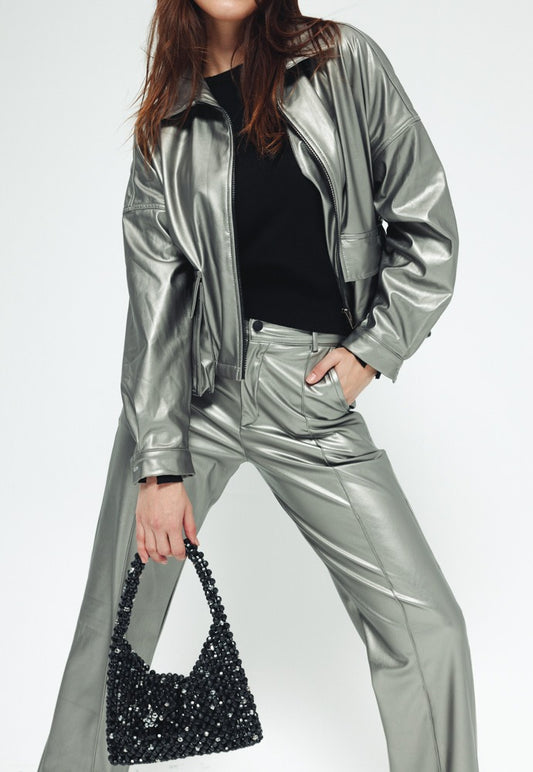 Straight Leather Pants - Silver