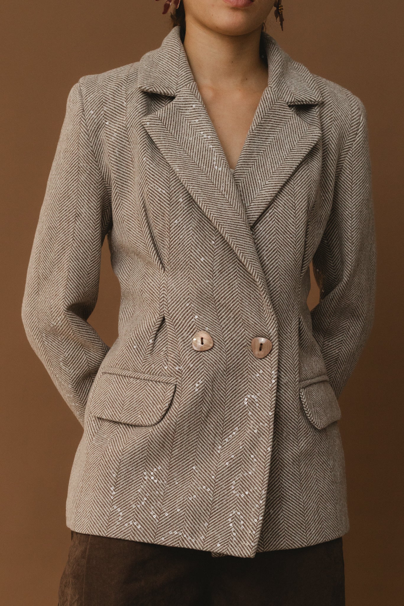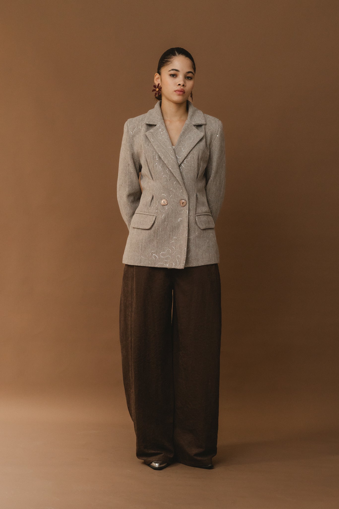 Cinched Shimmery Blazer - Brown