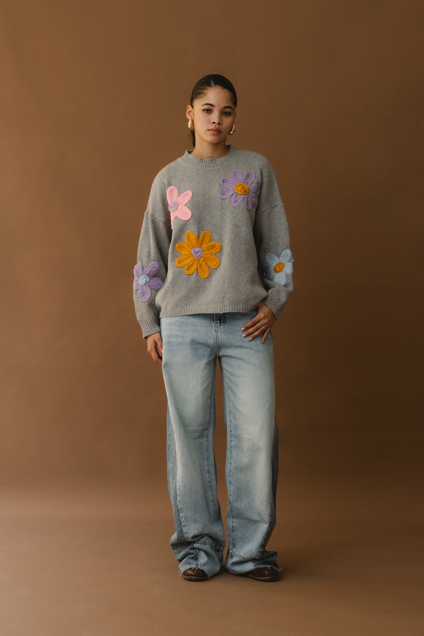Fun Flower Sweater - Grey