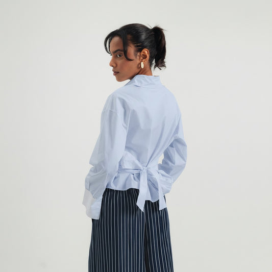 Cinched Poplin Shirt - Blue